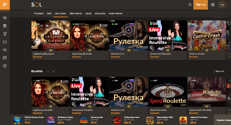 All of the gamers at Sol Casino have access to a genuine Evolution Gaming Live Dealer casino. With a chatbox and strategically positioned high-definition cameras, you can communicate with the dealer and other players while also keeping an eye on all the tables. You may play live versions of Mega Ball, Monopoly, and Blackjack, among other games.