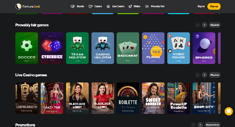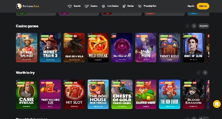 The casino game selection includes slot games to live casino games like video poker, video slots, jackpot slots, real money slots, progressive jackpots, live roulette, auto roulette, and Multi Wheel Roulette, as well as other live dealer games like Dragon Tiger, baccarat, Sic Bo, table blackjack games, Lucky 7, jackpot games like Diamond Wild, and dice games like Little Panda, Asgardians, and Voodoo Dice. In fact, Fortune Jack offers a full selection of 1500+ slot games, including 3D slots with eye-catching graphics, 80+ casino live games, table games, blackjack variants like Single Deck Blackjack, and six Provably Fair Games with a manageable house edge. These games include Diamonds, HILO, Money Wheel, Plinko, Mines, and Dice. You can provide your own random number that was created manually or automatically by the computer thanks to provably fair. Also, participants can supply their own random numbers to create a unique method for shuffling cards in these various games.