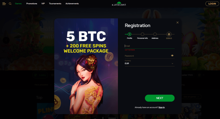 The 7000 slot machines, jackpots, table games, card games, video poker games, live dealer games, and Bitcoin games are available for users to choose from. Visitors may anticipate top-notch visuals, a fantastic sound design, and substantial prizes because all of the games are produced by major names in the gaming industry. The KatsuBet website has a simple signup process. It provides customers with a sizable welcome gift, a bonus coupon, up to 5 BTC, and extra money to get them started playing at the KatsuBet casino.